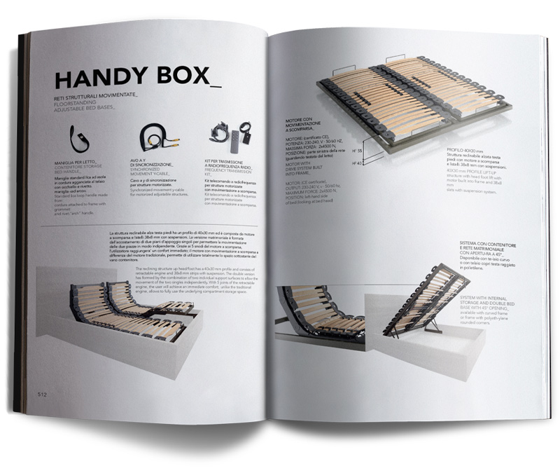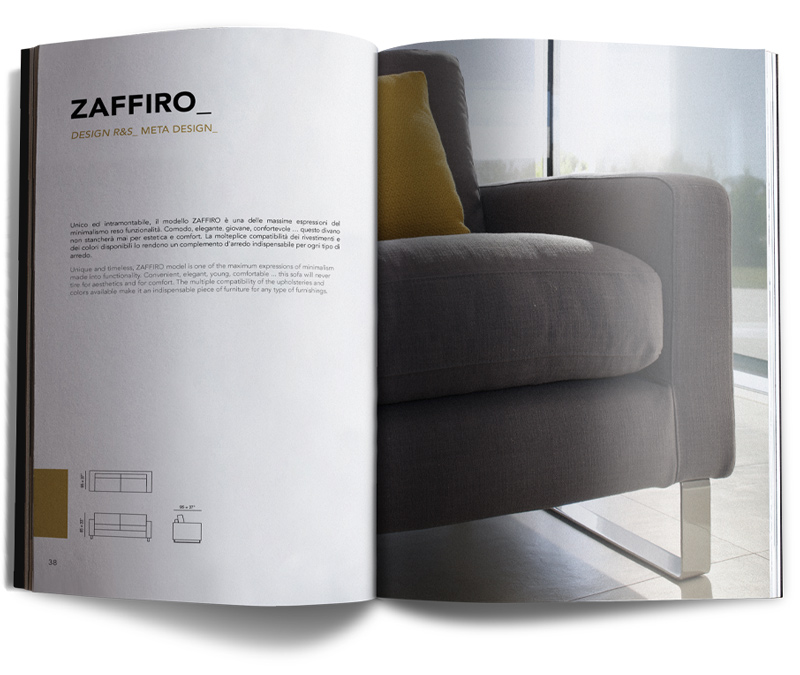 Il catalogo è stato progettato per riflettere l’identità del marchio, con fotografie curate che mettono in evidenza le finiture dei prodotti e il loro design.